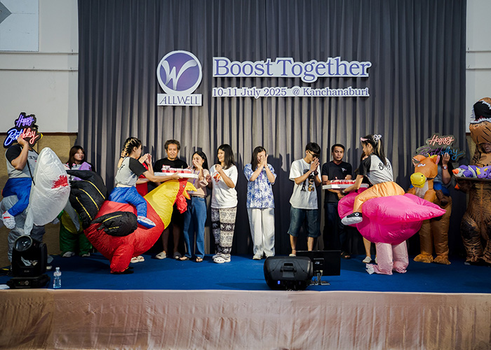 บริษัท ALLWELL จัดกิจกรรม Outing ประจำปี 2025 ระหว่างวันที่ 10–11 กรกฎาคม 2568 ณ โรงแรม Felix River Kwai Resort จังหวัดกาญจนบุรี โดยกิจกรรมครั้งนี้จัดขึ้นภายใต้แนวคิด “ALLWELL Boost Together” เพื่อเสริมสร้างพลังใจ ความสามัคคี และความแข็งแกร่งของทีมงาน ตลอดจนสร้างแรงบันดาลใจให้กับพนักงานในการทำงานร่วมกันอย่างมีประสิทธิภาพ